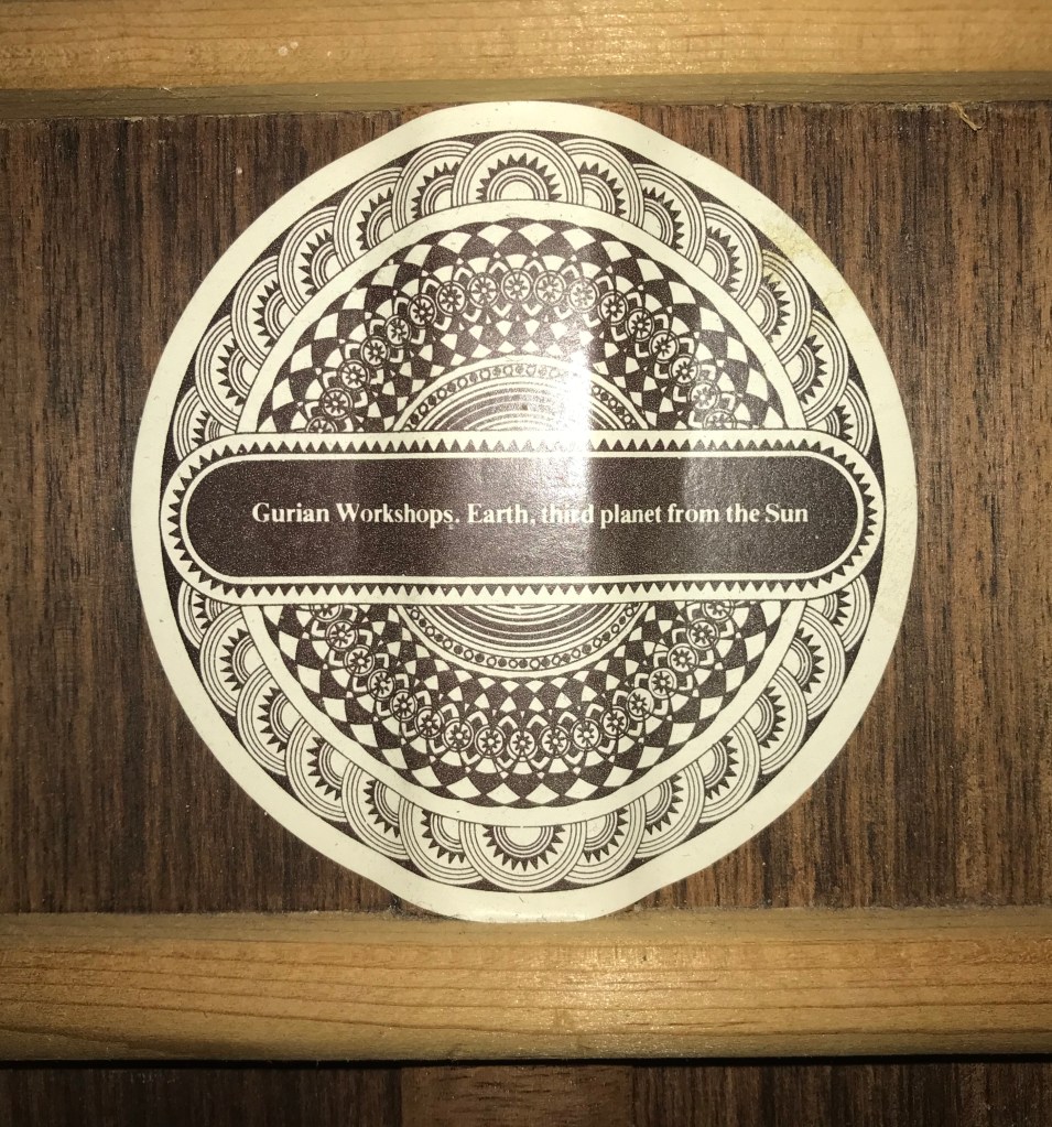 Zo grapte ik toen m’n broer met vriend in 1970 ging liften richting de Oost. Tot mijn grote verbazing seinde hij ’n maand of wat later dat er een flink pakket per post naar ons adres was gestuurd. Daar bleek een grote, zwarte, langwerpige doos in verpakt. Toen de deksel openging onthulde een hoes van dun katoen een pracht van een sitar.